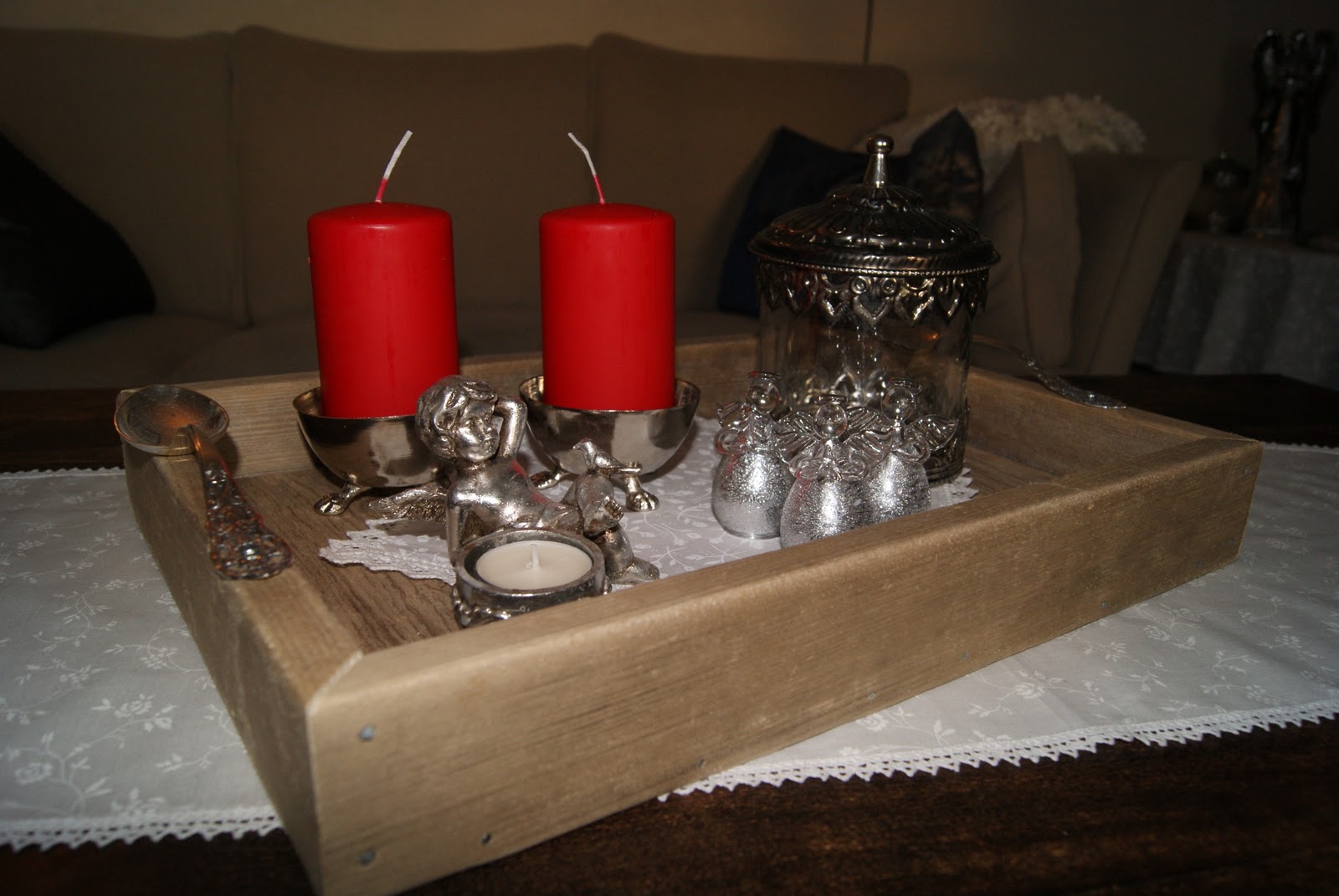 Serveringsbrettet jeg laget er pyntet til jul :) Selger serveringsbrett på Epla.no